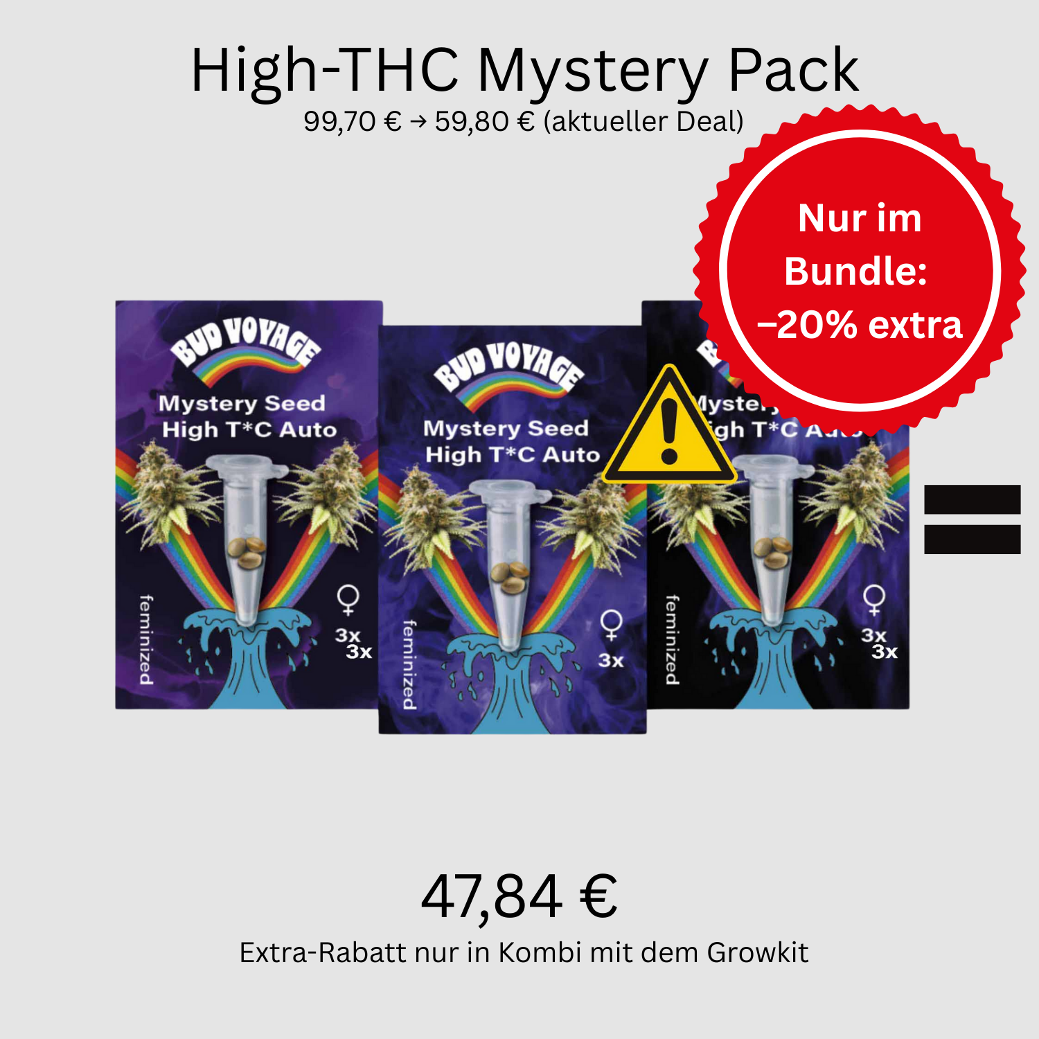 Kombiniere Growkit + High THC Mystery Pack und spare 20% auf die Seeds. Perfektes Setup, perfekter Preis.